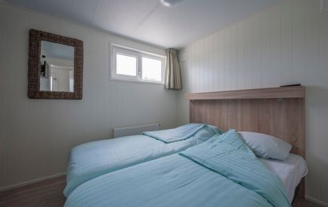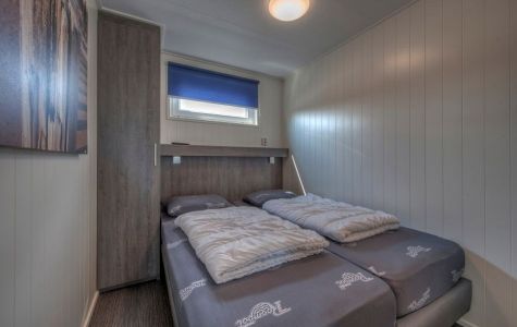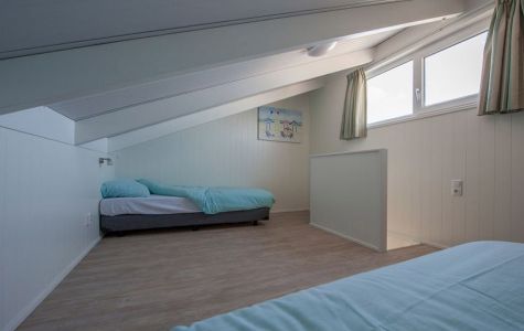 Slaapkamer(s): Afhankelijk van het type accommodatie (4 of 6 pers.) beschikt het strandhuis over twee of drie slaapkamers. In het geval van twee slaapkamers is er één uitgerust met een stapelbed. In het geval van drie slaapkamers beschikt één kamer over twee lossen bedden. De 6-persoons accommodatie heeft twee verdiepingen, waardoor één van de slaapkamers zich op de tweede verdieping bevindt.